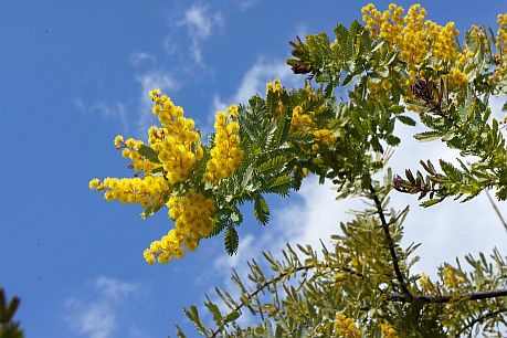 ミモザ(アカシア)がやっと開花しました。今年はやっぱり遅い(>_