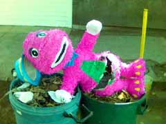 久々の早起き&サルサのレッスン&歯医者通い、で、今日は6時半の朝食以降夕方4時まで何も食べれず&歩き通しで疲労困ぱいです(-_-)歯医者の麻酔が取れたのもついさっきだし。1月中旬になってだいぶ暖かく(というか暑く)なってきて、それも疲労増大の原因かも。なんといっても足がパンパン!時々、日本で愛用していた足にピタッと貼るヒンヤリシートがほしくなります(-_-)(そーだ、それを今回の荷物に入れてもらえばよかった、と、今日思った。)そうしたら、近所の幼稚園の前に捨てられていたピニャタ。こちらもお疲れピニャタ。ピニャタの元々の形は、丸い素焼きの壷に角をつけたこちらの形なんですが、子供のフィエスタ(お祭り、パーティー)などでは、キャラクターもののピニャタ(紙製)が登場します。お腹を割られた、用済みピニャタ。いくらなんでも、こんな顕わな姿で路上のゴミ箱にポンッは夢がなさすぎるのでは・・・・、と、ちょっとこのピニャタくんに同情し、カシャリと一枚。かわいそうなピニャタです。