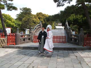 さて今回の旅の目的は、妹の結婚式でしたそう、姉妹で連続結婚記念日になりましたほんとうは23日にする可能性もあったようですが、今年は23日のお日柄があまり良くなかったらしく、一日ずれちゃって24日に。ニアミスで惜しいっ!!!さて、挙式は、鎌倉の鶴岡八幡宮で。春のうららかな日差しの下(昨日までの寒い雨のお天気が信じられないくらい!)、観光客や修学旅行生など大勢の人に祝福されながら、フラッシュの嵐の中、参道を歩き、由緒正しい八幡宮・若宮での挙式は、姉の欲目ではありますが、なかなか感慨深いものがありました。そして、何故か和装になると母に瓜二つになる妹に、身内としてはかなり笑えました。メイクリハーサルの時の写真を見て、祖母が「○○(母の名前)さん?」と嫁と孫を見間違えるくらいで(爆)ということで、またまたメキシコ、パナマとは全く関係のない身内話ですが、ちょっとだけ、写真を公開。新郎新婦です。春の観光シーズン、修学旅行シーズンで、観光客でごった返す中、 参道を歩く。★★★マメ知識今回妹達が式を挙げた、鶴岡八幡宮の「若宮」という神殿は、その昔、静御前が囚われの身で義経を思い「しずや、しず~」と踊った場所だそうです。(昨年の大河ドラマ「義経」参照。※NHK大河ドラマは駐妻必須メニュ-です)ただ、静御前が踊った頃の「若宮」は、現在工事中の「舞殿」の場所にあったようなので、実際の場所とは異なるみたいですが・・・・。