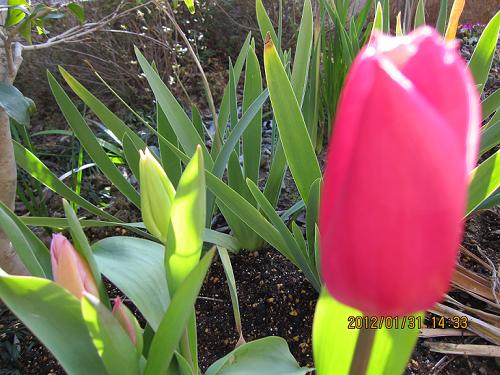 光浴び ピンク輝く チューリップ