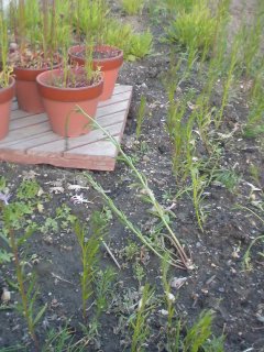 皆様コンニチハ お天気がコロコロよく替わりますね。 アルローラです。晴れてるんですが、時折 時雨れたり、風も冷たく 春が足踏みしてるようですね。今日は 午前中 お仕事でした。ガウスは この前の事もあり、お庭で待機^^;)夕方からまたお仕事ですが、今度の月曜で今年度の「ゴミ収集」が終りなので・・シールがあるうちに 出さなくっちゃ;;;なので.. ブログアップ後は 夕方まで草むしりになりそうです(-o-;;) 庭の小さな畑に蒔いた『スナックエンドウ』が 芽を出してきました。 これは 24日に写したんですが、この時はまだチラホラとしか出てませんでした。今は 大体 出揃ってきたようです。毎夕 ベタガケして、霜があたらないようにしてます。 昨日 ファーマーズに行って、野菜を買ってきました。農家のおじいちゃんや おばあちゃんが育ててる物ですから、珍しい物はありません。旬の野菜で 同じようなのがゴロゴロしてます。今だと ブロッコリー・キャベツ・大根・ほうれん草・玉葱..といったところでしょうか。そろそろ これらも終りでしょうかね。終りの頃だし、思い切った『値段』や『物』だったりもします。これ... 1株です。 よしピーのカップ、300cc入るんですけど これで150円でした。今朝 調理したけど、置くだけで大皿2つ使いましたよ;;; 今だと虫もついてないしね(^^)束の間の『ブロッコリー長者』です^^;;)さぁ~て、草むしりしてきましょうかねぇ じゃぁ またね。