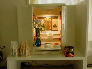 皆様コンニチハ 今日は全国的に雨模様に向かってますね。 アルローラです。さて、昨日のお話になりますが 我が家のお仏壇の『おしょうね抜き・入れ』が行なわれました。まず実家の方のお仏壇で読経して頂き その後 中のをお引越しし、我が家でも読経して頂きました。新しいお仏壇に無事お引越しでき、ホッとしました 田中さ~ん、こんな感じになりました~ (^0^)ぁ.. 田中さんは このお仏壇を販売されてる『現代仏壇』にお勤めされてます。とても優しい感じの女性です(^_^)我が家で読経されてる間、ガウスは庭に出しておきましたが、とても静かに待ってました。ピーピー鳴くんじゃないかと心配してましたが、ジッと待ってましたよお天気も良かったので、助かりました。お寺さんが帰られた後、全体を撮って見ました。・・下に入り込んでますね^^;;) まぁ いろんな意見はあると思いますが、私としては 愛すべきお仏壇となり良かったと思ってます。そぅそぅ、読経が終わり お寺さんと一緒にマザーが贈ってくれた珈琲を頂いたんですが・・もの凄いインパクト有り 小豆島土産:オリーブ珈琲 ...めっちゃ緑三人で盛り上がりました味は オリーブと珈琲の味(..まんまやがな;;;)ちょっと まったりした珈琲味って感じ? ウンウン。 美味しかったらイイんじゃないのはい そうですね。 そして楽しかったです( ≧艸≦)ヤレヤレの1日でした。 ホッとしました。 じゃぁ またね。