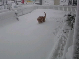 皆様 あけまして おめでとうございますm_ _m アルローラです。夕べも降ってましたが・・今朝も 起きて庭を覗いて見たら・・ 雪でした ガウス めっちゃ喜んでます。寒さなんて感じないくらいに はしゃぎ回ってますよ;;; ついでに 母も・・今日は誰も雪かきなんてしてないのに・・なぜか ジッとしていられなくて^^;;) 窓から見える雪景色は素敵なんですが、時折 砂埃が舞うような感じで雪が舞ってます。まだまだ降り続くんでしょうかねぇ。お昼まで 中でまったりするけど・・お昼が済んだら またガウスと一緒に外で遊びたいナァ・・ じゃぁ またね。