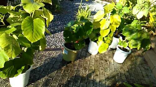 皆様 コンバンハ 寒い夜になってます。 アルローラです。今日は1日 とても良いお天気でした。なので・・よしピーを送り出した後、ウォーキングをして 帰宅後そのまま水やりをしました。水やりが終わって、冬用のお庭へと模様替えをしました。玄関先に出してあったウンベラータを並べ まずは葉っぱのシャワーです。葉っぱが大きい分 ホコリも溜まりやすいしね。 風の無い日にしないとね これがまた よく倒れるんだわ~それが済んだら 中に入れるために殺虫剤を撒いて虫の駆除です。 家の中で 温かい場所だと、何が出てくるか.... 怖いですから受け皿も洗っておきました。 観葉植物は 私の担当なので、きちんとしてから中に入れないとしばらくは 風に任せて 葉っぱの水分を飛ばし、鉢から出る水分が切れるまで放置。その間に 洗濯物を干し、ついでに毛布やお布団も日向ぼっこさせときましたお天気が良い月曜は、どなたも『やる気』が充満してるようで、早朝にもかかわらず車も人も多かったです。庭の仕事が終わり、家の中も掃除機で掃除し しばらくしてから植物達を中に入れました。まぁ いつものジャングルが出来上がり、(´艸`*)フフフな冬支度です。庭の様子は 今後、もう少し手を加える予定でいます。それはまた 徐々にやっていこうと。取り合えず、鉢の移動やら模様替えを楽しんで 11月になったら花も植えたいと思ってます。日々のこうした楽しみが出来るのが 大変だけど、なにより 何よりやわぁ~ じゃぁ またね。