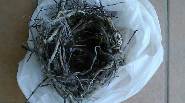 皆様コンニチハ 風も穏やかで 室内だと少し肌寒い日になってます。 アルローラです。お昼にウォーキングを一緒にしてる年配の人がいらっしゃるんですけどね。そこのお宅に 背の高い木々があるんですよ。去年だったかなぁ.. 御主人が金木犀を剪定したら、鳥の巣があって 卵が見つかったって。 「ありゃりゃ やっちゃいましたか」もぅそれは、親鳥は戻ってこないでしょうね。。。次回は 野鳥が産卵する頃は気を付けてね って事をお願いしておきました。でです。先月 いつものようにお宅に伺った時、手が届きそうな高さの垣根から ひな鳥の声が聞こえました 「鳴いてるから 剪定は待って下さいね」って それから2週間ほど待ってもらいました。鳴声も聞こえなくなったので、剪定されたみたいです。巣を見せてもらえるようお願いしてあったので、昨日 持ってきて下さいましたコチラ・・・ 直径15センチほどの 小さな巣です。中は7センチ あるかないか...。小さな木だったので、セキレイかな?って思ってたんですが、茶色の羽があるし.... 違うのかなぁ。 野山にある巣じゃなくて、住宅地で作った巣なので やたら人工的な物で作られてますね。 ビニール紐が多いです 食べる物じゃないからいいのかもしれませんが、やはり 自然の物で作られるのが本来の姿でしょう。何の鳥なのでしょうか。7センチに入りきる親鳥って.. でも運んでる枝は 結構大きな物もありますね。子育て中は 雨も降って強い風も吹いたでしょうに ご苦労様でした。今 ここで育ったひな鳥達が、近くの空を飛び交ってると思うと なんだか嬉しいです春は あちこちのお庭の木々から ひな鳥の声が聞こえてきて(* ̄▽ ̄)フフフッ♪ってなります。昔からの広いお庭のお宅が いつまでもそのままのお庭であってほしいと、勝手な期待をしてしまいます。 じゃぁ またね。
