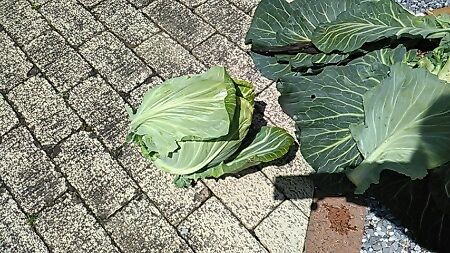 この前 収穫したキャベツは、サラダと餃子に使っちゃったので、2個目を収穫することにしました