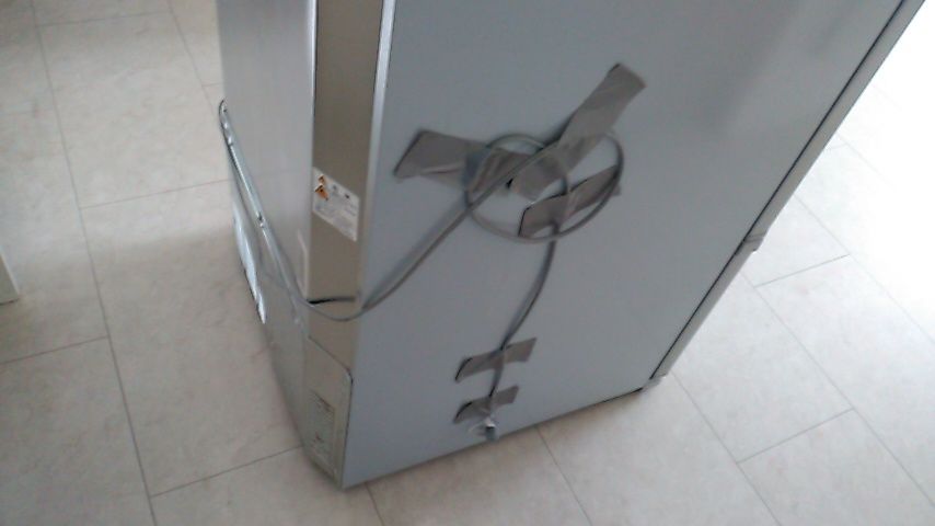 ついでに、移動に邪魔なコードは 冷蔵庫にくっつけておきました。