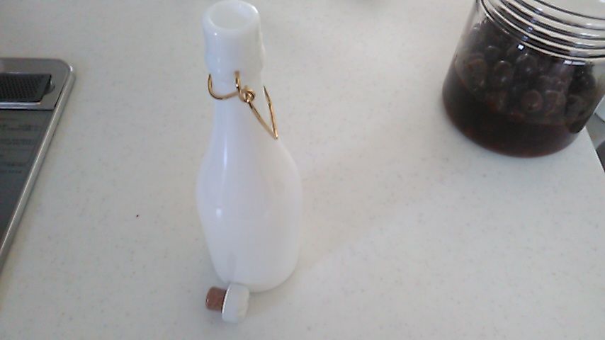 去年だっけ? 作った『ナツメ酢』を こんな こじゃれた瓶に移し替えてみました。