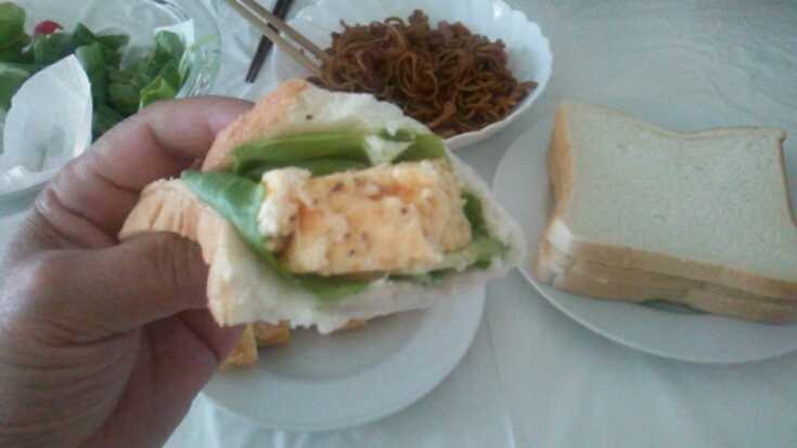 野菜を洗って 焼きそばと卵焼きで簡単サンドですよー
