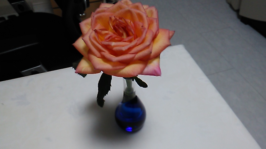 今日は ゴミ出しの日だったので、テーブルの1輪だけ残し 貰った薔薇もまとめて「ありがとう」でした。