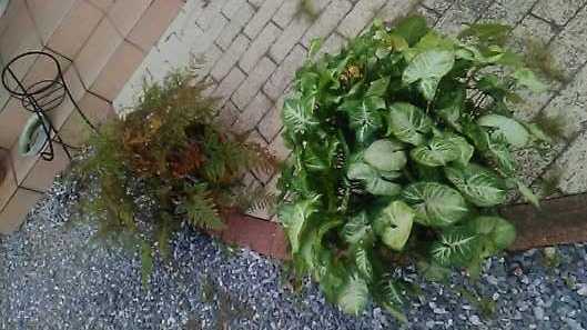 ついでに 観葉植物に雨水があたるように 表に出しておいたけど...。