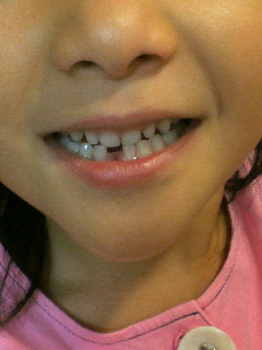 仕上げ磨きをしてあげたら、ポロら、取れた。