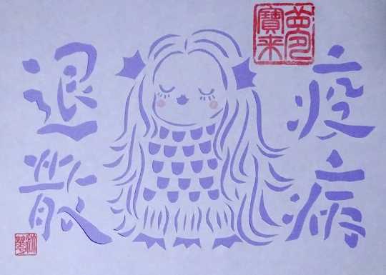 夢宝来(切り絵)で アマビエ
