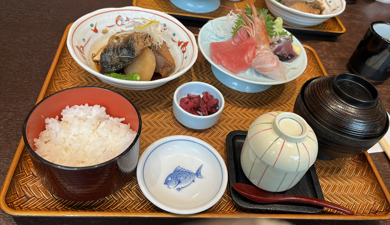 煮魚(ぶり)と刺身定食です。みそ汁茶碗蒸付