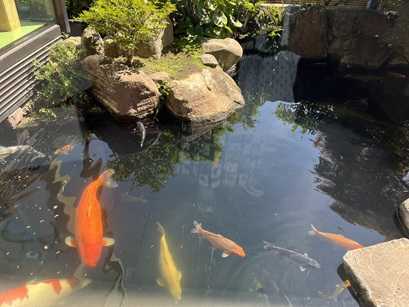 で、見ていたら突然、ものすごい大きな鯉が来てびっくりしました!