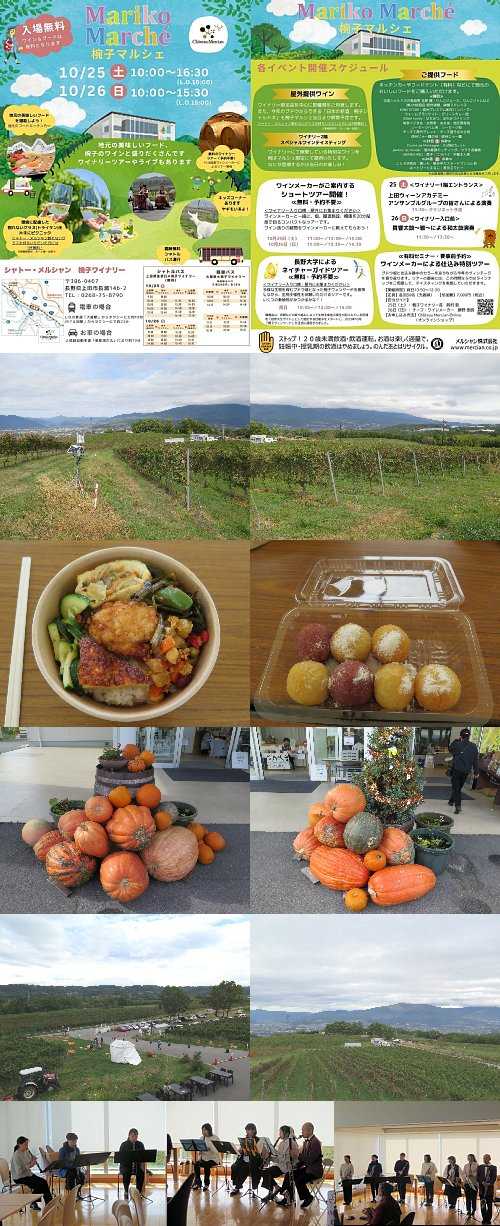 開催日:2025.10.25(土) 11:30開演場所 :シャトー・メルシャン椀子ワイナリー椀子マルシェ2025秋で行われた上田ウィーンアカデミークラリネットパートによるアンサンブル演奏へ行ってきました。プログラム上田ウィーンアカデミークラリネットパートによる演奏1.アイネクライネナハトムジーク/モーツァルト2.交響曲第25番ト短調より第一楽章/モーツァルト3.セビリアの理髪師より序曲/ロッシーニ4.秋の童謡メドレー5.サウンドオブミュージック/ロジャースレポートアイネクライネナハトムジークモーツァルトといえばアイネクライネ!という程よく知られている曲でのスタートとなりました。特に1楽章が有名ですが、だいぶ古い話ではありますがマリオブラザーズのゲームスタート時に冒頭部分が使われていたことで、クラシックファンのみならず、広く一般にも知られるようになったのかもしれません。今回は、その有名な第1楽章の抜粋演奏となりました。交響曲第25番ト短調より第一楽章2025年の上田ウィーンアカデミーのレッスン曲として取り組まれました。モーツァルトとしてはめずらしい短調の曲で、大変有名な曲でもありますが、モーツァルトあるあるとして、まわりを聴きこうとアンテナをはると、つられて間違ってしまうため、時には耳を塞いでわが道を行く…ということが必要な曲なのかなと感じました。セビリアの理髪師より序曲2025年の上田ウィーンアカデミーのレッスン曲として取り組まれました。ロッシーニといえば大の食いしん坊であったそうですが、廣田先生の曲紹介でもそのことにふれられ、ステーキの上にフォアグラ。ロッシーニ風!折しも演奏会場となった2Fフロアでは、ワインとおいしい肉類が提供されており、まさに美食家ロッシーニと音楽家ロッシーニが共存したようなひとききと感じました。秋の童謡メドレーこの時期にピッタリな日本の秋の曲をセットにした曲で、季節感を感じながら楽しませていただきました。近年は地球温暖化の影響で夏が長くなり、秋をより感じるのは10月半ば過ぎになってきていますが、この日は冬を想わせる寒さがあり、晩秋~初冬の季節感がありました。サウンドオブミュージックメドレーアンコールということで、締めはサウンドオブミュージックを構成する楽曲から私のお気に入り、ドレミの歌、エーデルワイス、すべての山に登ろうなどをメドレーにした楽曲で昨年のマルシェに続いての演奏でしたが、定番曲として改めて椀子ワイナリーの開放的な景観によく似合う楽曲と感じました。まとめ椀子マルシェは春と秋に開催されていますが、恒例のやぎさんも来ておりにぎやかな催しとなっていました。また今回例年になく気温が低く、風も強かったため恒例だった野外ではなく、2Fの一角が演奏会場となり、とても新鮮な面持ちの中での演奏となりました。演奏後は、お楽しみのランチタイムということで、出店していた地元のお弁当屋さんのスペシャルランチをいだきましたが、メインにおいしい唐揚げ。そして地元の食材をふんだんに使った副菜など味わい深いところで、地元の食文化と世界に認められた椀子ワイナリーの一流のワインを楽しむ最高のシチュエーションになっていたと感じました。