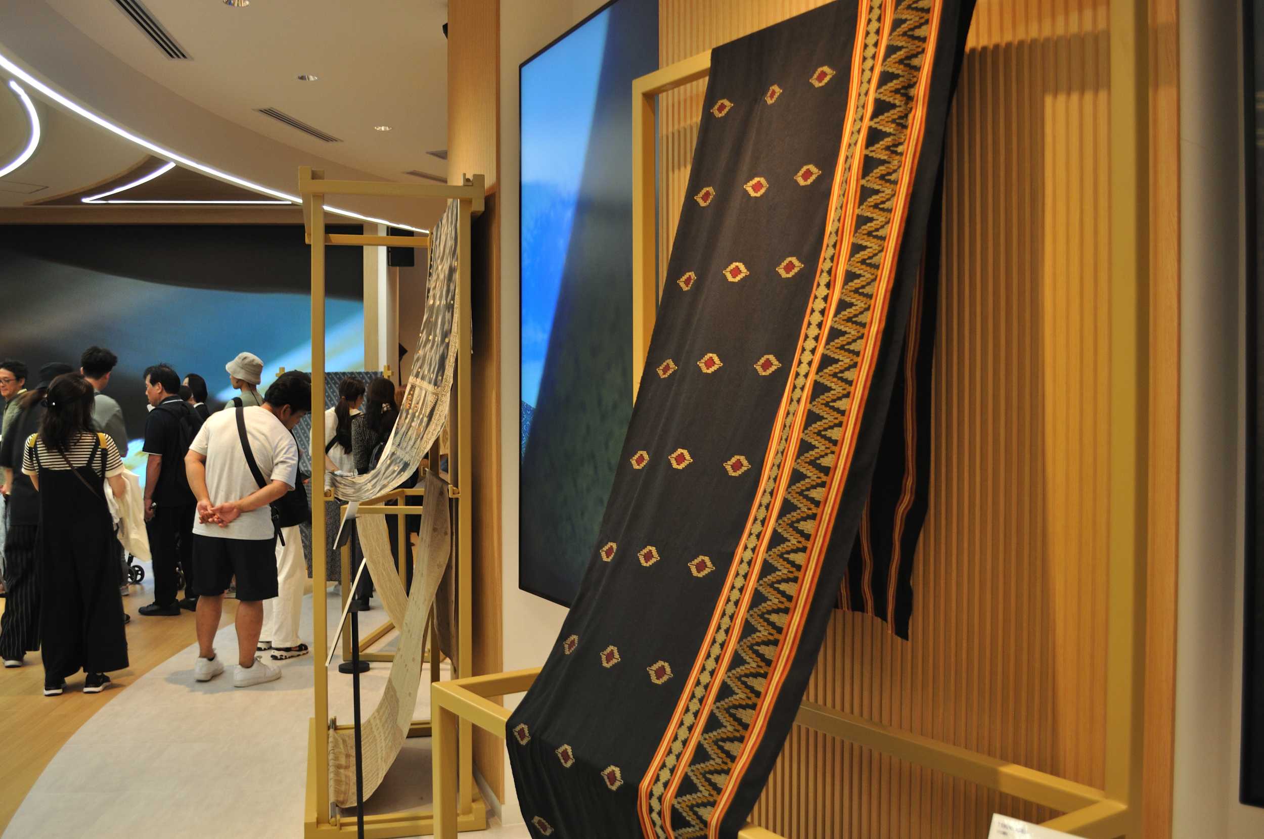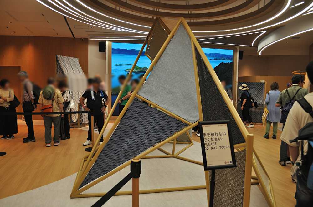 インドネシア館のカームダウン/クールダウンスペースは、この伝統織物の展示室の奥にあるようです。
