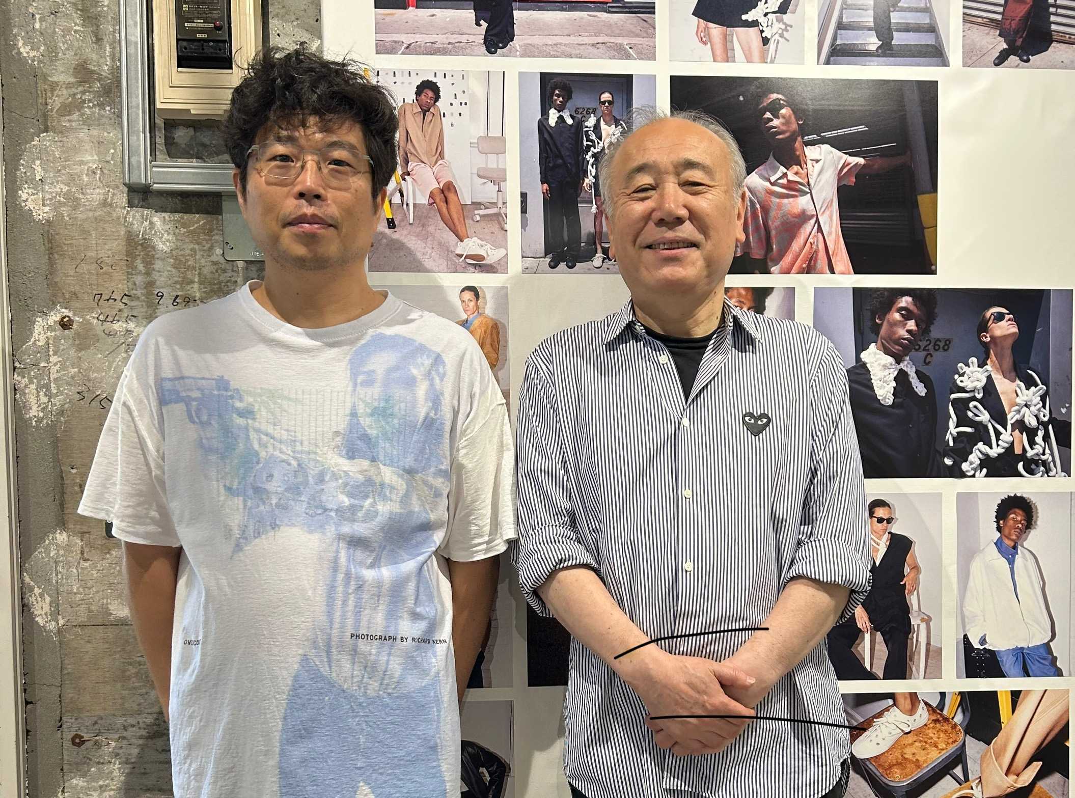 ニューヨーク在住の大丸隆平(おおまる・りゅうへい)さんと知り合ったのはおそらく10年ほど前のことだったと思います。ニューヨークコレクションで活躍する米国デザイナーたちからパターンづくりの依頼を受ける日本人が日本の若いパタンナーをニューヨークのアトリエに迎えて現地で仕事するチャンスを与えている、と聞きました。日本のパタンナーに国際経験させる面白い試み、私は俄然興味を持ちました。大丸隆平さん(左)大丸さんは文化服装学院を卒業してコムデギャルソンに採用されたパタンナー、コムデ企画生産部門で働いていた私の弟とは同じ部署です。現在活躍しているコムデ出身デザイナーの何人かは「太田部長に鍛えられました」と言いますから、ことによると大丸さんもその一人かもしれません。コムデを退職してニューヨークに渡る時点で大丸さん自身には将来オリジナルブランドを立ち上げる構想があったかどうかはわかりませんが、最初は米国デザイナーのコレクションピースを具体化するパターンメイキングのアトリエ事業、現在もCFDA(米国ファッションデザイナー協議会)オフィシャルパターンメーカーとしてきちんと認定されているそうです。その後米国デザイナーたちのパターン制作は続けながら、自社ブランドOVERCOATを立ち上げました。伊勢丹新宿のポップアップにお邪魔したこともありますが、現在はバーニーズニューヨークなど高価格帯商品を扱うセレクトショップや一部百貨店で販売しています。その大丸さんが一時帰国、来春夏コレクション展示会のご案内をいただき、今日拝見してきました。来シーズンは「千代の富士」とのコラボと聞いて、最初はイメージが浮かびませんでした。千代の富士は相撲の大横綱、すでに病死されています。遺児の秋元梢さん(俳優の松田翔太さんの奥様)がモデルという程度の知識しかなく、私はどうしていま頃故人千代の富士なんだろう、と。大丸さんの解説で理解できました。大丸さんは大横綱の息子さんと仲が良く、何か一緒にできることがあればという話から、横綱引退断髪式で断髪直後に着用されたジャケット(おそらくオーダーメイド)を参考にイメージを膨らませたようです。しっかりしたテーラードジャケットのところどころに穴を開け、そこに横綱の白い綱のように捻った細めの綱を通し、通す穴はあれこれ変更可能というデザイン。大判織りネームにはブランド名と千代の富士のサインがありました。横綱着用服(左)とコラボの細い綱を通した新作ジャケット織りネームには千代の富士のサインもまた、展示会場にはブルックリン在住のウクライナ人アーティストとコラボしたプリントTシャツがありました。ちょうど現在大相撲名古屋場所は終盤13日目、ウクライナ人の安青錦(あおにしき、東前頭筆頭)が優勝戦戦に絡んでいます。大横綱、ウクライナ人アーティストとコラボしたコレクション展示会開催中にウクライナ出身力士が優勝したらタイミング良すぎ、そんな話でも盛り上がりました。大丸さんは以前から尾州の中伝毛織の協力を得てシャツ用の薄手ウールなどを採用していますが、春夏物らしく軽くてシャリ感のあるダボっとゆったりカジュアルシャツやシャツジャケットもこの展示会では目につきました。見た目以上に軽いシャツジャケット(右)最近は米国デザイナーに向けたパターン制作よりも自社OVERCOATの方がビジネスの中核になりつつあると伺いました。ブランド事業の発展は会社にとって重要でしょうが、日本人技術者の丁寧な仕事がずっと評価され、若いパタンナーがニューヨークで仕事するチャンスをもらえることも非常に意味があり、ぜひパターン制作アトリエ機能もさらに拡充して欲しい。これからのご健闘を祈っております。<以下はOVERCOAT公式サイト>OVERCOATは2015年に大丸隆平がニューヨークで立ち上げたユニセックスブランド。ニューヨークの日常からインスピレーションを受けながら、西欧の文化である洋装を独自の視点で解釈した古コレクションを提案する。大丸は文化服装学院を卒業後、パリコレクション参加メゾンの元でキャリアを積み、2006年に渡米。2008年に企画会社oomaru seisakusho2を設立し、ニューヨークのデザイナーやクリエーティブコンサルタントおよびパターンメーカーとして活動してきた。これまでにOVERCOATを通じて出会ったPeter Miles、Jack Webb、Rirkirt Tiravanija、Richard Kern等のアーティストとコラボレーションも発表。ニューヨークと東京の両拠点で制作を続けている。