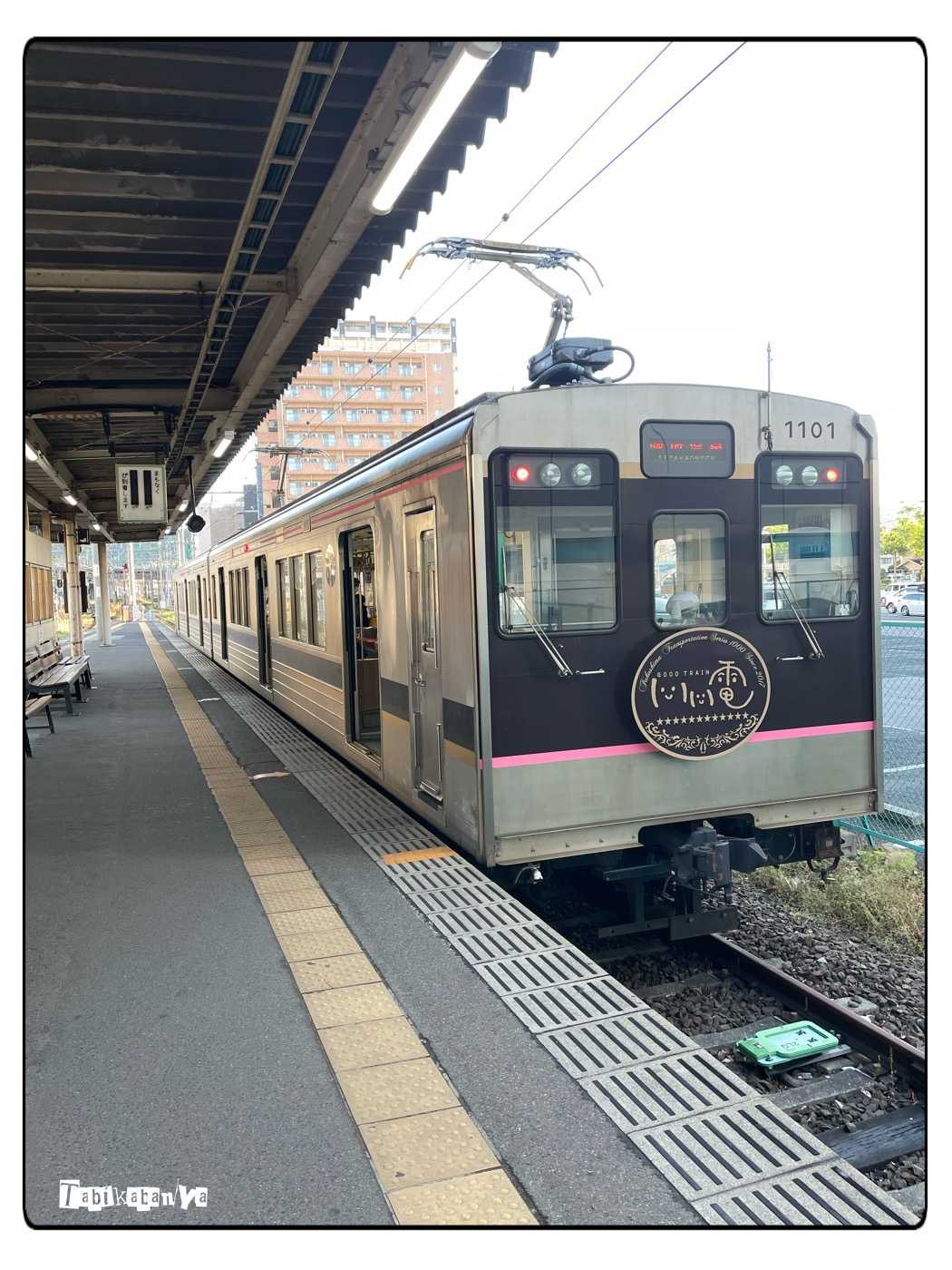 道中素早く温泉卵といかにんじん買って「いい電」に乗り込み