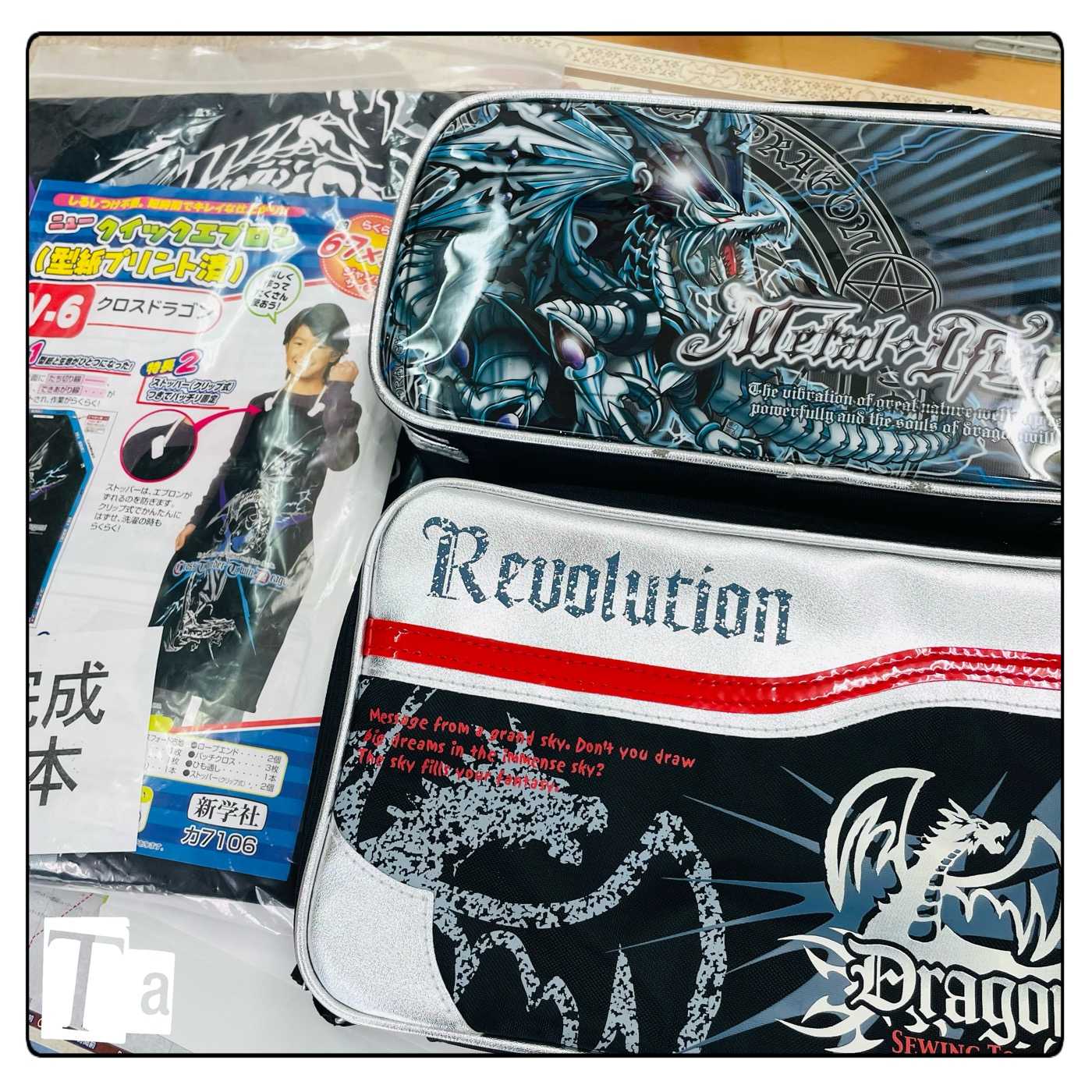 今年のコミケの「家庭科のドラゴン」面白い事になったなぁと楽しく眺めていた。ブラックドラゴン、ソウルオブサラマンダー、うちの会社でも取り扱って、売ってた。懐かしい。流石にダブルウイングは残ってないけど 何かドラゴン残っていないか?と探した所、このようなドラゴンが発掘されました。懐かしい。エプロンは教師用の半完成見本ですね。他は裁縫セットです。当時は私も世間の親御さんと同じ事思っていたよ。こんな面白コンテンツになるとは、時代って読めなくて楽しい。HOME