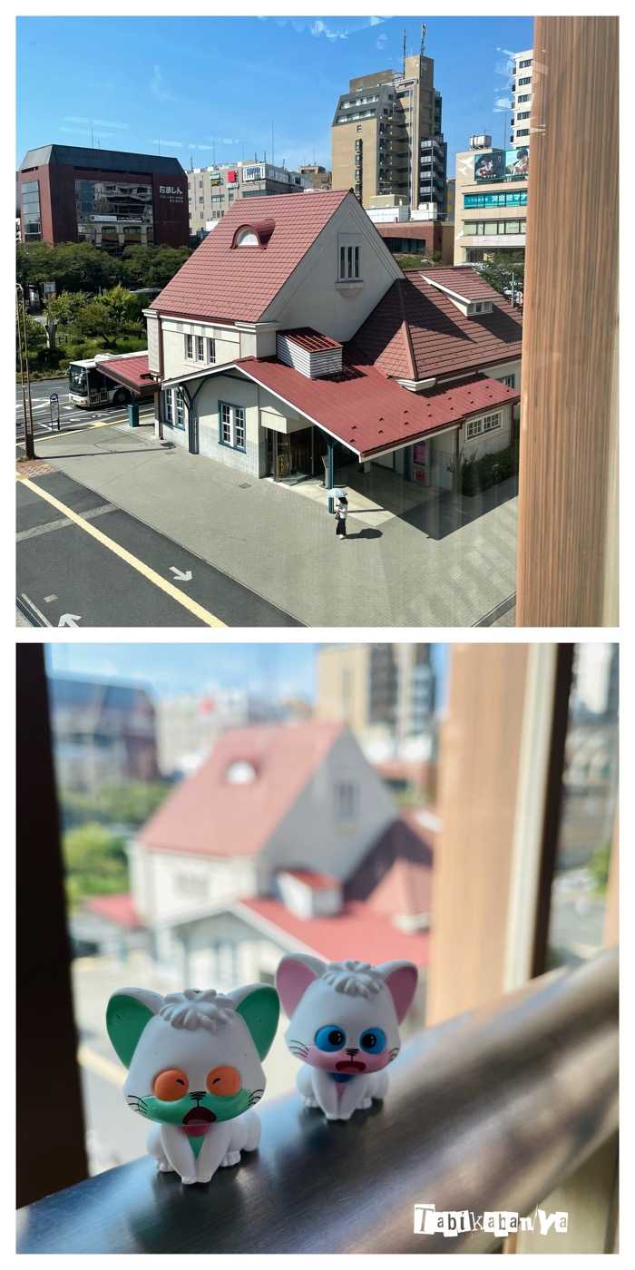 先月、うすた展に行く前に 友達と一緒に国立駅にも寄っていました。寄っていた?いや、積極的に行ったが正しいな。位置関係的に全然寄れる場所じゃない。ここに行きたかったのは私の個人的な想いが強く付き合ってくれた友人には感謝。行きたいんだけど、って相談してすぐ「いいよ、私も行ったことない、行こう!」って言ってくれて嬉しかったよ。国立駅はこんな三角屋根のかわいい駅舎です。…と それを撮っているこちら側は現在の国立駅のホームから。アニメ「魔法の天使クリィミーマミ」の主人公、森沢優がこの付近に住んでいた設定の町。実在する町がモデルだと知ったのは私的にはごく最近で、知ったからにはこの目で見たいと思っていた駅です。元々こちら国立駅舎は美しい木造建築でJR中央線高架化により一度解体・移築再建されたものです。(建材など、解体時に保存して再建時に同じものを使用しているよう)国立市の努力により今こうして昔の面影を残した姿を拝めるのですね。ありがたい。費用は一部ふるさと納税で募ってた時期があったとか、知っていたら是非寄付したかった。→今現在国立市はふるさと納税の使い道に「旧国立駅舎を中心とした国立駅周辺の憩いの空間やにぎわいの創出のために」という項目があったので今年是非そうさせていただきます。東側の再建はできなかったそうですが、この建物の両脇に建つ予定の高層ビルは阻止した国立市。駅舎や町に対する強い拘り・愛情を感じます。中は現在このようになっていて休憩したり コミュニティ広場であったり、昔の構造についての展示物やギフトショップなんかもあります。柱にレールを使っていたり、見れば見るほど素晴らしい。ギフトショップも楽しかった。マンホールカードもらえたり、駅舎ガチャがあったので回したりしました。か かわいいなにこれ もう ものすごいファンになっちゃうじゃんあとは外に出て ロータリーを一回りしてマンホールカードにあったマンホール見たり180度楽しんだりしました。国立駅の観光マップも配布したりしていて、それを見て気づいたんだが駅から伸びる道路…どう見てもこの駅舎の屋根の角度ではないだろうか。駅舎が出来たころ、この辺りはまだ道路の整備がされていなかったようなのでこの駅舎をモチーフに道路を敷いたのだとしたら そこからも強い愛着を感じます。来れてよかった。いい駅だった。じゃあ 次は東京競馬場に行かないとな。(マミに出てくるセントラル競馬場のモデルらしい)そちらはまた日を改めて行きます。HOME