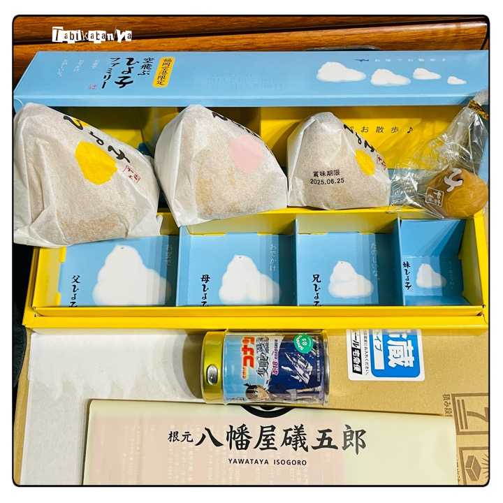 日記はかなり間が空いてしまったが載せるつもりで撮った写真はたくさんあって実行が伴わずに消えていってる感じです今日はその中の一つを救済。というか博多の旅の付随というか。福岡空港で前回(1月)に撮った売り場の写真を何気なく見ていたらとんでもなく心を掴まれてしまったものが写っていたのにあーー もう福岡空港行く予定当分ないな… と思ってたら数ヶ月後に実現したので絶対買おうと思っていたお土産。それがこの「空飛ぶ ひよこファミリー」だ!(下の礒五郎はスペースが余った&コナン缶買って来たので記念に写しておいた)と言うわけで ひよこの親子です。でっかいのと小さいのが異様に可愛い。まあ 並べ 並べ。母サイズが通常の大きさかと思ったら、どうも兄サイズが通常の大きさのようだ。(袋に包まれてるのは別に買った抹茶ひよこ)父がデカいしちょっとヘタってるのがまたいい。大きさによって賞味期限が違って、意外なことに父と妹の賞味期限が早い。いつまでも取っておきたかったけど、期限内に全て平らげました。多分十数年ぶりに食べたような気がするが、変わらぬ味だった。そして昔の記憶よりちょっと美味しかった。HOME