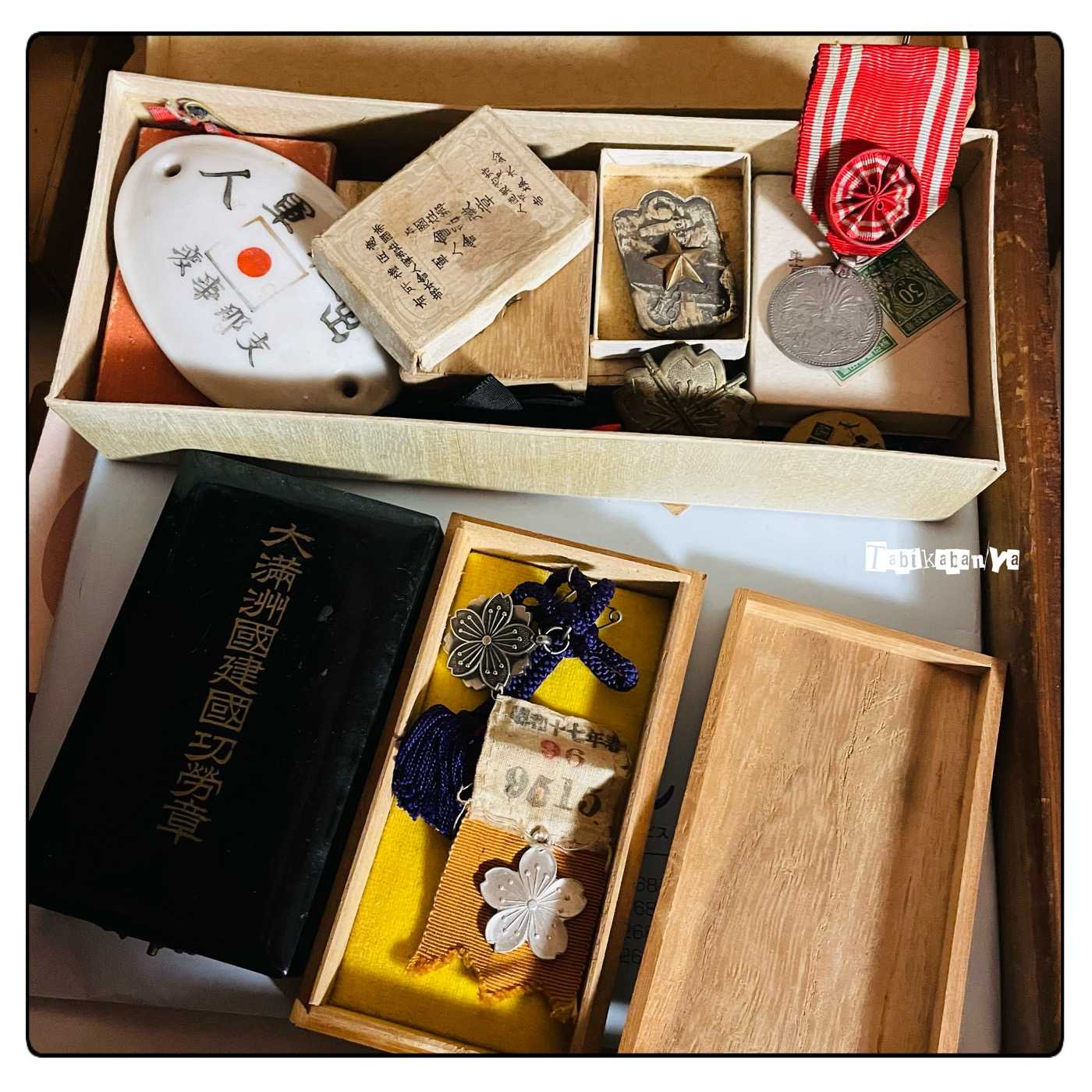 母の実家に線香をあげに行っただけ だったのに祖母の着物の整理の話になり、昔の切手の話になり、なぜか流れで 祖父や、祖父の兄弟のものだった勲章を見せてもらう事になった。色々ごちゃ混ぜで残してあったものを、叔母が綺麗にまとめて箱に入れたものだ。空の箱、中身と外見の合わないものが多数あったようだがその全てがこれだという。私は初めて見た。見せてもらった。物質としてかなり素敵で欲しくなってしまうものばかりだったがこれは私が気軽に手にしていいものでは無い。私のものでは無い。彼らの生きた証なのだ。当時、本人たちにとってどのような価値であったか今となってはわからないがこれはただの物質ではなくて 計り知れない重みを持つものだ。これは 美しく、儚く、残酷なものかもしれない。終戦記念日にこれを見ることが出来てなんだか不思議な感じだった。ずっとこの場所にあって欲しい。祖母の着物はとてもたくさんあって、出来たら然るべき人や場所に渡って欲しいがそうも言っていられないかもしれない。一着、貰って帰った。多分祖母の仕立てたものだ。私が死ぬまでは私が大事に保管しようと思う。HOME
