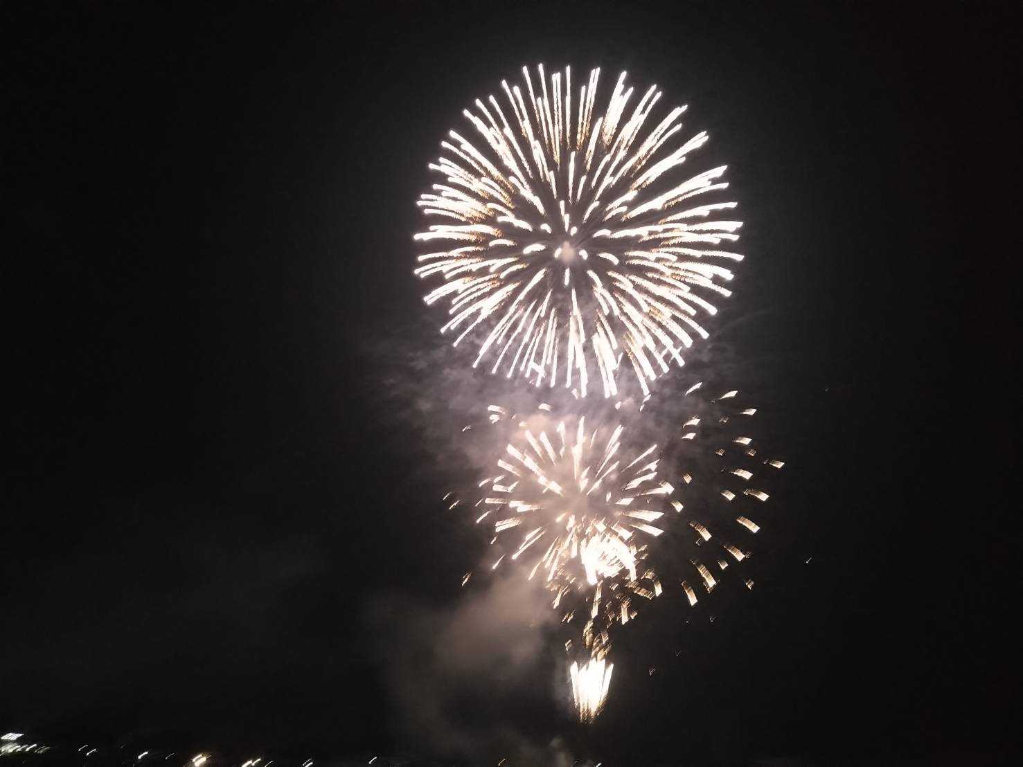 トライス:さてさて、今回はいろいろな意味で開催されるか心配だった花火大会が無事に開催されて、今年も夏の風物詩を見られてよかったな、という感じになった一日だったよ。 6 月に横浜で見た花火もよかったけど、やっぱり、この時期の方が夏の花火らしくていいかな。