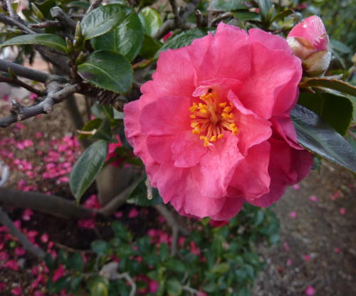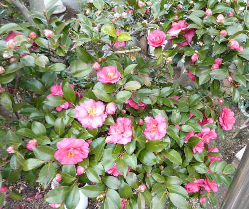 こんばんは今日はお日様が出てからは暖かかったかな?暖かいと思えば雨らしい。。。 またまた登場のサザンカこれは月曜日の分だと思う。。。天気が良くて暖かいとドンドン開花してました また寒さが戻ってたのでこの後どうなるだろう??? ネタが無いので咲き続けてもらった方が良いですね。。。 とりあえず綺麗だったら撮っておくシリーズ。。。。 で昨日の続き石のところの南天を撤去してその奥もどうにかしたいなぁ と思ってたので 地下茎で増えたルリマツリを動かしてみました それからそれから 勝手に鉢に出てきたツワブキを石の前に置いてみたでまたまた線を引いて考えてました すると先にサークル状のレンガを広げたいなぁと結論が出ましたそのためにはまず飛び石を撤去しないと。。。。 で掘ってみたら見えている石はほんの一部俗に言う氷山の一角的な感じ 地中部に20センチ以上埋まっていたのでした。。。これではひ弱なワタクシでは不可能!ってことで元に戻してまたまたブロックに座って悩んでました。ら夕暮れ時になっちゃったちゃんちゃん つづく。。。 ってことで本日は家族からチョコ2個いつもより多かったのでよしとするわぁ。。。。 ふ~~~