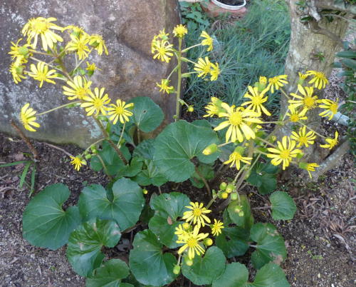こんばんは今日は晴れ間が多くてちょうど良い具合の天候だった。。。 連休の中日は雨のようですが連休になるのかは分からない現在は仕事は暇中です。。。 土曜日の庭より ツワブキが咲いてました すぐこの横に斑入りのツワブキが出てきてたのだけど消えました・・・!ドロンッ!どこ行ったんだろうねぇ。。。 パッと見では分かりませんがオバQ仕立ての金木犀が咲いてます基本2段階で咲きますが今年は遅咲き分のほうが賑やかだったガヤガヤ~!剪定の加減で表面上は静かですが。。。シ~ン。。。 玄関前の花壇はトレニアとコリウスでジャングル状態でした コリウスの力ってすごいですねぇ けど~!もう晩秋になってきたし来年の春に備える事もあるでしょ なので 伐採して森、程度の茂りにしておきました トレニアは種が落ちるまでは放置です 中の方を見てみるとデルフィのコボレみたいなのも出ています 丸い葉っぱは兵庫から岡山に行ってまたまた兵庫にツルを伸ばしたウォーターマッシュルームです繁殖力が強くて時折引っ張って抜かないと庭中マッシュルームになりそうです丸い葉っぱが可愛いので調整しながら楽しみます そのほかでは スミレちゃんのコボレを見つけて移植してました 球根の植え付けもあるしまだまだ出てくるを楽しみにしてます。。。 ふ~~~
