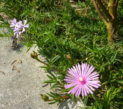 こんばんは今日は涼しくなりましたね昼間は缶詰だったので分からなかったけど帰ってきたらいと、涼し。。。 今咲いている庭の花 ボケ咲きの芝桜とマツバギク雨が少なくても水やりが廻れないなのでちょっぴり萎れ気味です芝桜はちょっと水をやったら、春と間違えたか? マツバギクの花びらを見るとなんか可愛いですねペンペンとはじけそうオルゴールみたい。。。。 でもっと花びらいっぱいのが 咲き始めましたアスター 去年買ったヤツの冬夏越しですまさか咲くとは思ってなかった ワタクシこの花の形と色が大好きなので咲いてくれないかなぁとずっと思ってたのです で 3年くらい前に買ったのも咲き始めました2年間咲かなかったからきっとホルモン処理してあるとばかり思ってましたきっと何かが変わったのでしょう 上には青いサルビアこれは元気で咲いてます冬には氷のドレスも見せてくれましたがそれに負けること無く咲き続けてます それにしても キレイねぇやっぱ花壇の土にも3年!ってことだわ。。。 続きのバラ ジャストジョイの挿し木良い感じで開ききりました トレゾアの挿し木こっちは秋色ではなくていつものエキゾチックでした それにしてもアレだ!今年は咲かないはずの花が咲きましたバナナとアスター これはきっと何かあるもしかしてだけど~♪宝くじ~があ・た・る・か・も~♪この後見に行ってきますもし当たってたら出てこないかも~? ふ~~~