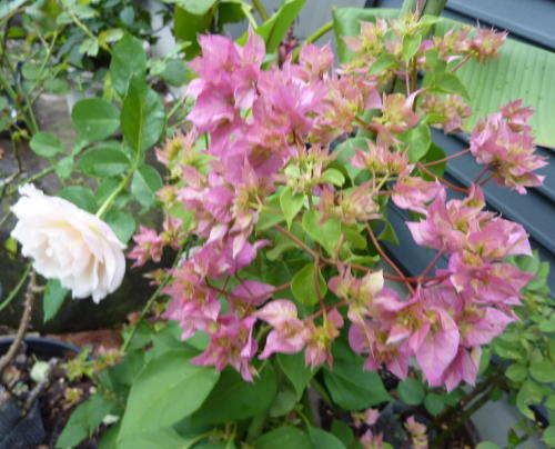 こんばんは 今日は神戸で早く帰れる予定が遅くなっちまったい。。。チト手間取りました!なんかぬく~い感じやね明日からは11月で、最後の半袖デー!の予定。。。 この前から少し色づき始めたブーゲンさんが こんな感じ シュシュとツーショットです 花は まだ咲いて無いかな? 夏にバッサリやった ロイヤルサンセット良く伸びましたすでに3m以上になってます伸びるならカットしなかったのにねぇ。。。 ベーサルは無いけれどサイドからの伸びですカットしたから伸びたのでしょうが。。。 土曜日に ホムセン行って買ってきました シクラメン2種去年は3つあって夏越しに挑戦今回は完全にカラカラ作戦でしたが 2つは撃沈もう一つだけ様子見ですタブンダメでしょうぶよぶよしてるもん触るから余計にダメなのかなぁ。。。まあウチでは夏越しは難しいと言うことですがまた挑戦はしてみたいと思ってますで植え付けも完了でした 2つとも勿体ないからイチキュッパでしたウチにはこれぐらいのが良いのかも?球根は、ええ形してまっせ! 青いのはまた考えよう。。。 ふ~~~