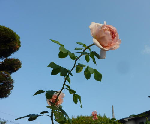 こんばんは今日も暑かったです昼前に大阪市役所に出かけましたが暑くて大汗でした淀屋橋の辺りでテレビのインタビューしてた後ろを通ったけどもしかしたら写ってたかも?今のところ誰からも電話はないのでカットされたか。。。 ディオールイマイチ元気はないのですがチラホラとは咲いてます ローズオオサカ2世挿し木から格上げしましたが伸びが悪いですねやはり、ここは灼熱だ~!? 日曜日脚立に上がって庭を眺める ん~!こんな時にバスタオルを干すなんてって言いながら グリーンカーテンを片付けました よく考えたら今年は朝顔の登場回数が少なかった暑くて萎れ気味が多かったのかも?バスタオルが気になるので早めに家の中へそもそも暑かったので速乾でしたWA! バラの鉢を移動させて椅子を出して手入れしてました河本家がズラ~リ。。。真ん中はガブリエルの挿し木右側はちゃうのん。。。窮屈なので二人だけは仲間に入れずガブリエルとシュシュは別に・・・! その後ろでは久しぶりのお日様で喜んでる? アネモネかなり、くた~っ!となってました雨も当たりにくいですからねで様子見していたキワ~ノですがどうも結実は無理みたいだけど心残りがあるので ここへ移動ここにはこぼれ種でのルコウソウも咲いてます でキワ~ノは まだ咲いてますねん。。。 いよいよ明日から播州のまつりモードに突入しますけどその前に整列させた河本家集合させて倒れないようにしないとねぇ風が強そうですよみなさんも気を付けましょう 夜中に通り過ぎればいいけれど。。。しばらくは酔いどれです。。。今年は自粛モードですが。。。 ふ~~~