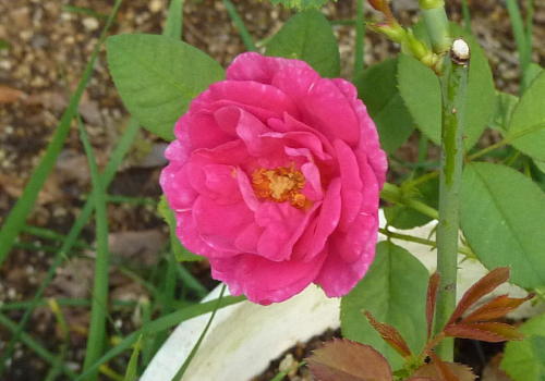 こんばんは雨が降るかと思ってたけど薄日が射して午後は晴れ間もでていました台風の進路は気になるけれど適度な雨も欲しいし週末はゴソゴソしたい。。。咲いてたバラこの時期にガブリエル知らない間に伸びたシュートに一輪だけブルドゥパルファム虫食い。。。土曜日に畑にて冬野菜のトンネルを一つ追加白菜の苗の残りを植えて種も撒いておきましたあの、おっさんの真似をしてジャガイモを植え付け元々は秋ジャガはやらないけど春の種用に植え付けた3つだけだけ。。。一応割ったけど。。。袋で葉っぱが大きくなっていたゴボウ掘り出して見たらショボかった土が悪いのか水加減が悪いのか分からないけれど。。。悔しいのでまた袋を立てて再チャレンジです手前は収穫した上部を切って植えておきました再生すればゴボウができるツモリ。。。試し掘りでショウガを収穫大きくなってないけど二つだけ掘り起こした皮を剝いて梅干しの瓶にいれておきましたもうすぐ鯖寿司の季節になるからねぇ。。。最初のガブリエル時間が経つと開き切るほんのり青かった中心も普通になりました台風の後の気候がどうなるか・・?やりたいことはいっぱいある。。。じゃ