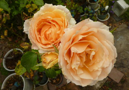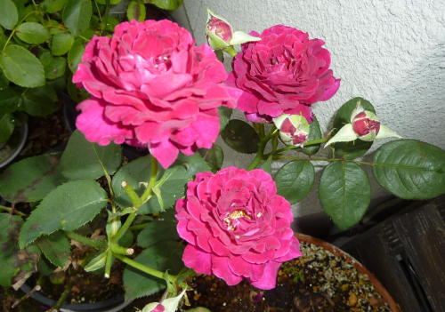 こんばんは一時よりは涼しい梅雨とは言いながら空梅雨だと言うより宣言を間違ったのだろう色んな裏もあるので仕方無いか。。。適度に雨を。。。庭にてディオールの続きグラミスキャッスルの挿し木親株はショボンインカ3世土曜日に畑の世話の後庭の植木の剪定をやったツゲ2本とツツジ・サツキを数本8月の終わりまでにまだまだある去年残してた松もあるし。。その後西側花壇でお日様ガンガンで弱っていたパパメイヤンを鉢上げその後にギーサヴォアを持ってきたギーさんが植わってた南側には同じく西側から、弱ってたわたらせを持ってきたわたらせの後にはダービーの挿し木を持ってきたコレで鉢植えが入れ替わって地植えが移動プラスマイナス、ゼロだったけどそんなん面白くないのでチャーミアンをブラックベリーの下に持ってきた配置としては強いと思われるバラを西側に西側で弱ってたのを南や塀の中の半日日陰に移動になったこの時期の移植でどうなるかと思うけどわたらせ以外はちゃんとしてるわたらせも朝はちゃんとしてるのでそのうちに回復するだろう。。。南側ではマダムヴィオレそう言えばこのマダムは西側で弱っていて南へ移動させその後にわたらせを持って行ったのであった今では元気になったもんなぁ結果的に当たりの移動であった。。。適度に交換していくのがええのかもと思う。。。嫌地は知らんけど。。。じゃ