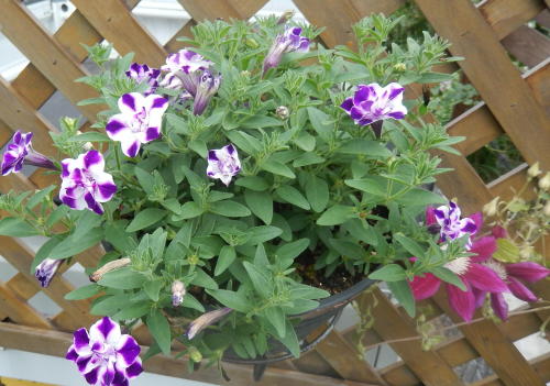 こんばんは夜中の3時過ぎからゴロゴロ~雨はたいして降って無いけど長かったそして午後にもゴロゴロ~直接は見ていないけど雨は少なめと思うどちらかと言うと北部で沢山降っている畑の予定のために控えめだったら良いのになぁ。。。処分品で買ったペチュニアええ感じですか?去年買ったクレマも良い色合いでっすそれぞれアップにしてみるとまあまあか・・?クレマの白万重はヤバそうな雰囲気ですが。。。咲いていたバラエブタイドの挿し木ブラスバンドミッドナイトブルーの挿し木と親株西側花壇ではこの時期に不思議に元気になるローブ咲き始めから開き切るまで、ええですなぁ今週は2日間だけの実働でしたが疲れた・・!この疲れを取るためにもっと体を疲れさせないと・・!じゃ
