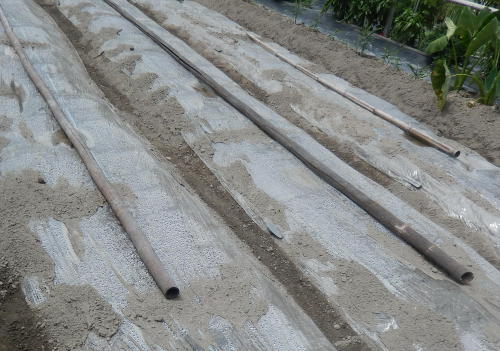 こんばんは今日は雲も少なく夏らしい天気だったみたい室温34度寝るまでは我慢しよう・・!昨日から湿度は低めだけどね。。。先週の木曜日畑を耕した後透明マルチを張りました地温上昇による消毒に期待ですマルチの下では蒸発した水が夜には落ちての繰り返しをやってるでしょう2~3日夕立もあったのでその水分も加わって良い消毒を期待します買った透明マルチは処分品で100mものだったので3本だけでしたどうせならもう1本しておけば良かったかも・・?2週間放置の予定で使い回します。。。誕生日キュウリは伸びてきてネットに絡まり始めてました場所によっては色々で水切れでダウンもあり少しは収穫を期待しております土曜にホムセンいって買ってきたワケギ植え付けました残ってたのが少なかったので追加です来年は忘れずに掘りあげておこう。。。イチゴポットを追加して苗採りは25本ほどになってますオカンは直接移植が好きみたいで半分はそのままです枯れなければ良いけれど。。。土曜の収穫トマト・茄子・キュウリ・シシトウでした茄子は剪定の残りで少なめですキュウリも少し落ち着いてます日曜にキャベツの種播きましたサトウ君良い種は少し高いのでプラスチックの容器に入ってました15粒ほど直まきし5本を家のポットにしてます他にキャベツ3種を採りだして写真は撮ったけど播いたのは2種ですどれがどれかは忘れましたあまり多く苗が出来ても植え付ける場所が無いのを忘れてて反省。。。日曜の収穫トマト・キュウリ・人参・大葉だったキュウリやゴーヤのストックが余ってたので日曜の昼に頑張ってみたキュウリの9ちゃん風と残った出汁で作ったゴーヤの5ちゃん風我ながら旨い・・!じゃ