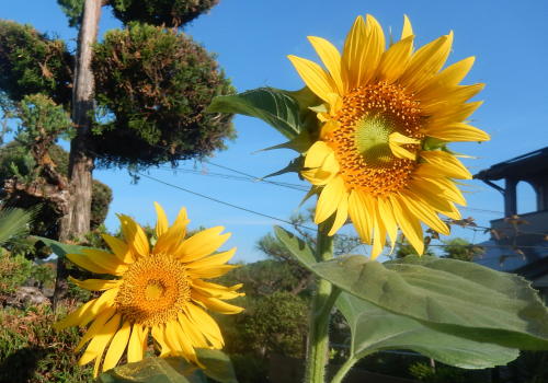 こんばんはちょっと涼しさを感じますがきっと帰り道ではライトオンだからかも知れない・・?まだ室温は33度だし。。。庭でようやくひまわりが咲きました何度も種をまき直しましたが発芽せずこの時期になって開花です昔からある品種は途絶えました。。玄関前のブーゲンも咲いてます後ろのバナナはまだですが。。、咲いていたバラ気分はロマンチックロイヤルサンセットの挿し木ミッドナイトブルーの挿し木トレゾアローズ大阪の挿し木分ローブサイレントラブフリューゲルどれも咲いたら1日でチリチリですってことで土日にかけて剪定を行いました少し長めで蕾もチラホラ残しておりますがトリアエズはみんな居なくなった。。。じゃ