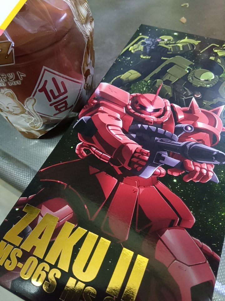 バレンタインのチョコをもらいました。仙豆とザク。シャアザクの方はしっかりモノアイまで再現されてました。中身は普通に甘いチョコでした。