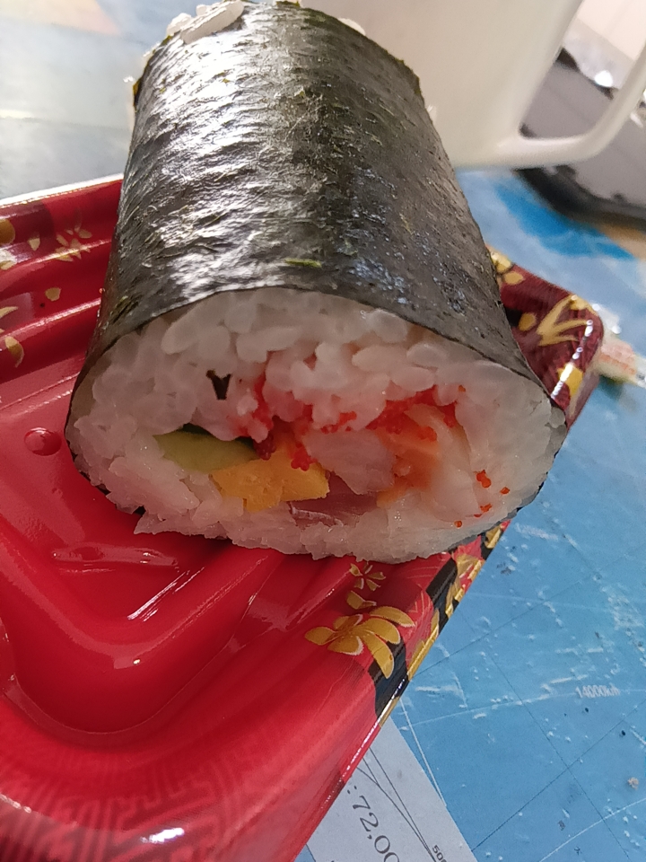 それほど乗り気ではなかったものの、家族皆でスーパーの恵方巻をいただくことに。ハーフサイズでも十分な大きさ。だまって美味しくいただきました。こんな静かな食事はめったにありません。ついでに節分の豆も歳の数だけ食べました。