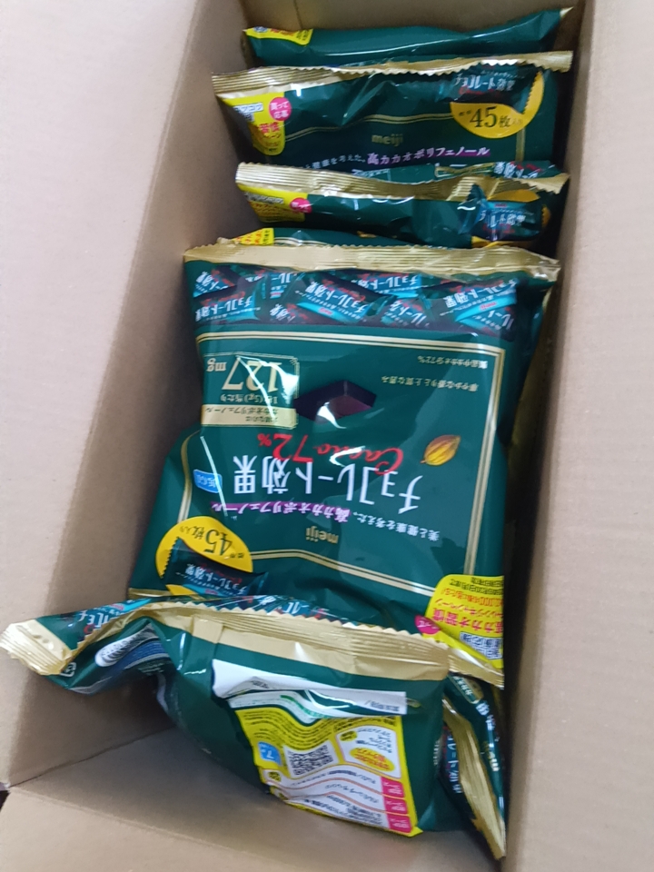 お菓子屋さんで袋タイプのチョコレート効果が売り切れだったので、ふるさと納税で買ってみました。たっぷり12袋。食べ切るのにしばらくかかりそうです。