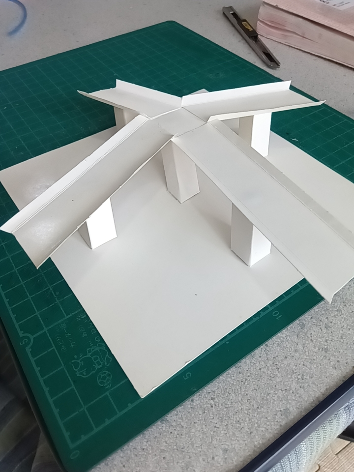 久しぶりにトリックアート工作にチャレンジ。下の子がほぼ一人で完成させました。どの橋に置いても交差点に向かいます。いびつな形なので糊付けが難しかったですが、仕上げ以外は上手にできました。