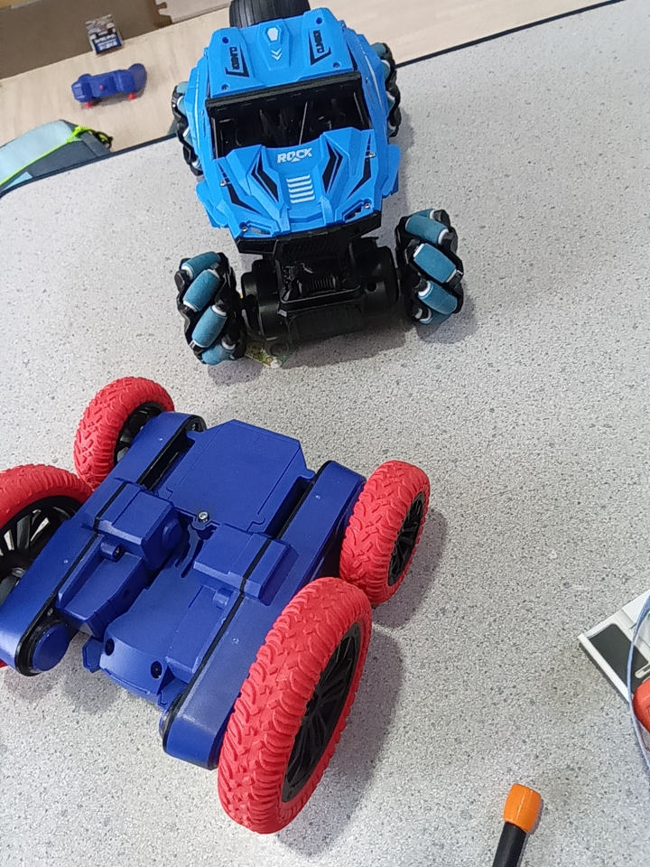 お古のラジコンが壊れて兄妹でラジコンが欲しくなって、下の子も新しいラジコン お小遣いで買うことになりました。コンクリート上では 回転をします。横移動はできないですが軽いためにスピードが早く前後の移動は素早いです。ちょっとした段差は上り下りできます。鬼ごっこをしたり サッカー対決をしたりいろんな遊び方ができて、自分が子供だった頃に比べると 格段に 性能が上がっているよう。