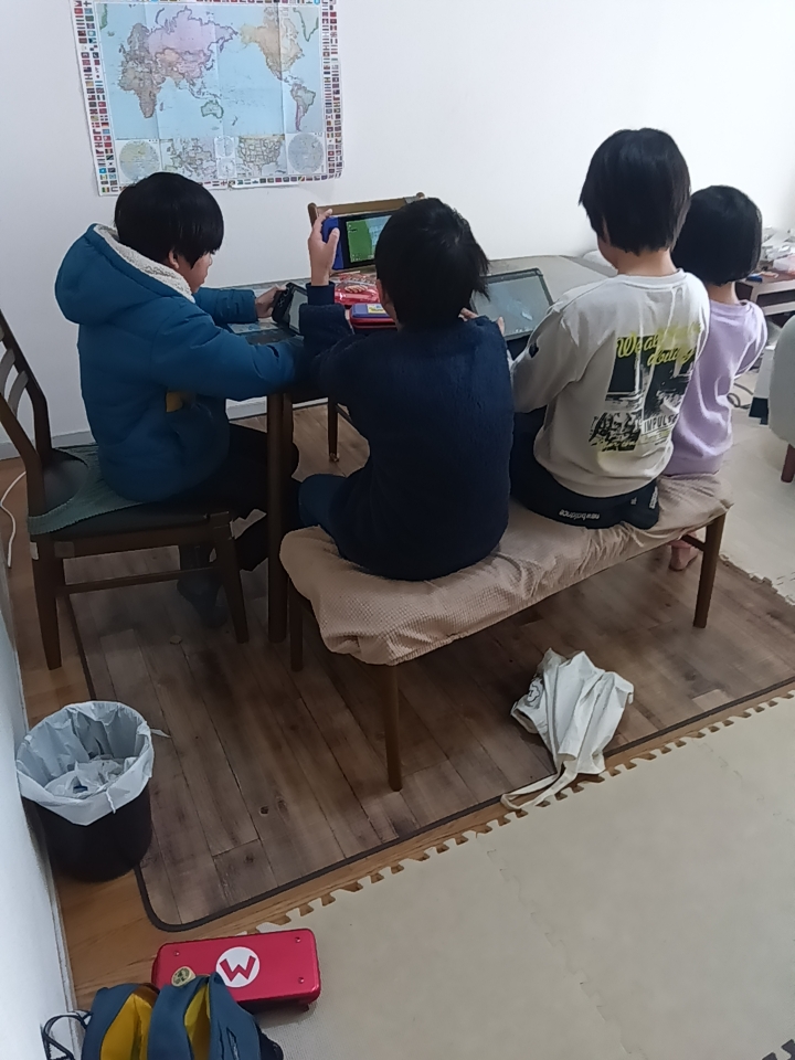 友だちを呼んで皆でマイクラ。ペアでオリジナルのジャンプ台やスライダーを作って遊んでいました。