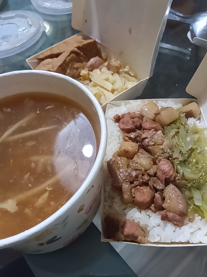 夕食のテイクアウトで利用しました。イカのスープ,魯肉飯,筍と厚揚げ豆腐のセットで130元。スープはかつお節の出汁が利いていて美味しかったです。そのほかのおかずも想像通りの味でした。ただ,子どもにはそれほど受けず。伝統的な小吃は子どもがいない平日限定に食べるのがよさそうです。