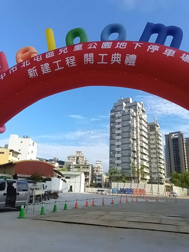 近くの児童公園は地下駐車場の工事中ですが、即席アーチ門できてました。休日のうちに、台中市長が演説するなど華々しく着工記念行事を行なったようです。これからもしばらく入れない期間が続きそうです。
