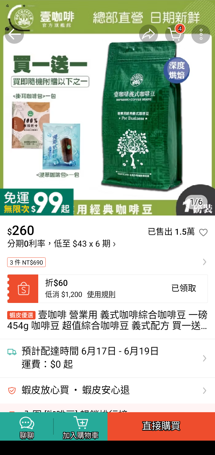 安いコーヒー豆を見つけて買ってみることに。454g260元でオマケのドリップコーヒーが一つついてきました。原料豆のままがデフォルトで、挽いてもらうには発注時に注意書き欄に依頼すべきでしたが、うっかりし忘れました。でも発注後に店と直接つながるチャットで細かく挽いてもらう指示ができたのでよかったです。ブラジルとインドネシアのブレンドでしたが、とてもおいしかったです。よりお得な豆を見つけたのでまたの機会に試してみます。