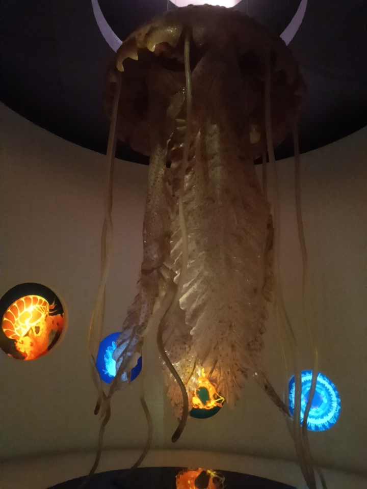 博物館の無料開放デー前回とは違って,バスとubikeに分かれて向かいました。希望のバスにはあと一歩で乗り遅れましたが,頑張って別のバス停まで歩いて無事たどりつけました。前回見られなかった生命館へ。小さな生物を巨大化して展示していました。カンブリア紀の世界から順番に再現されていました。恐竜は割とリアルに動きました。オビラプトルが集団で狩りをする様子。生命館のメインだけに非常に充実した展示でした。2階から恐竜が下を眺めていました。恐竜絶滅後の生物も剝製などを使いながら解説されていました。続いて地球環境館の展示ものぞきました。こちらでは原住民のかつての生活の様子がわかる展示をみました。各部族の使用していたものが一覧になっています。有名なタオ族の船。唯一の離島蘭嶼に住む原住民。台中の歴史も一部コーナーとしてあったのでちらっとのぞきました。じっくり見たい気もしましたが,子どもが飽きていたので早々に撤退しました。