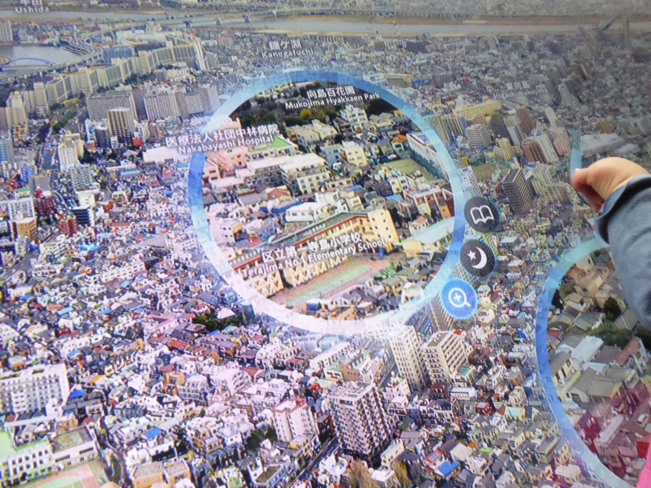 拡大鏡つきの案内板。