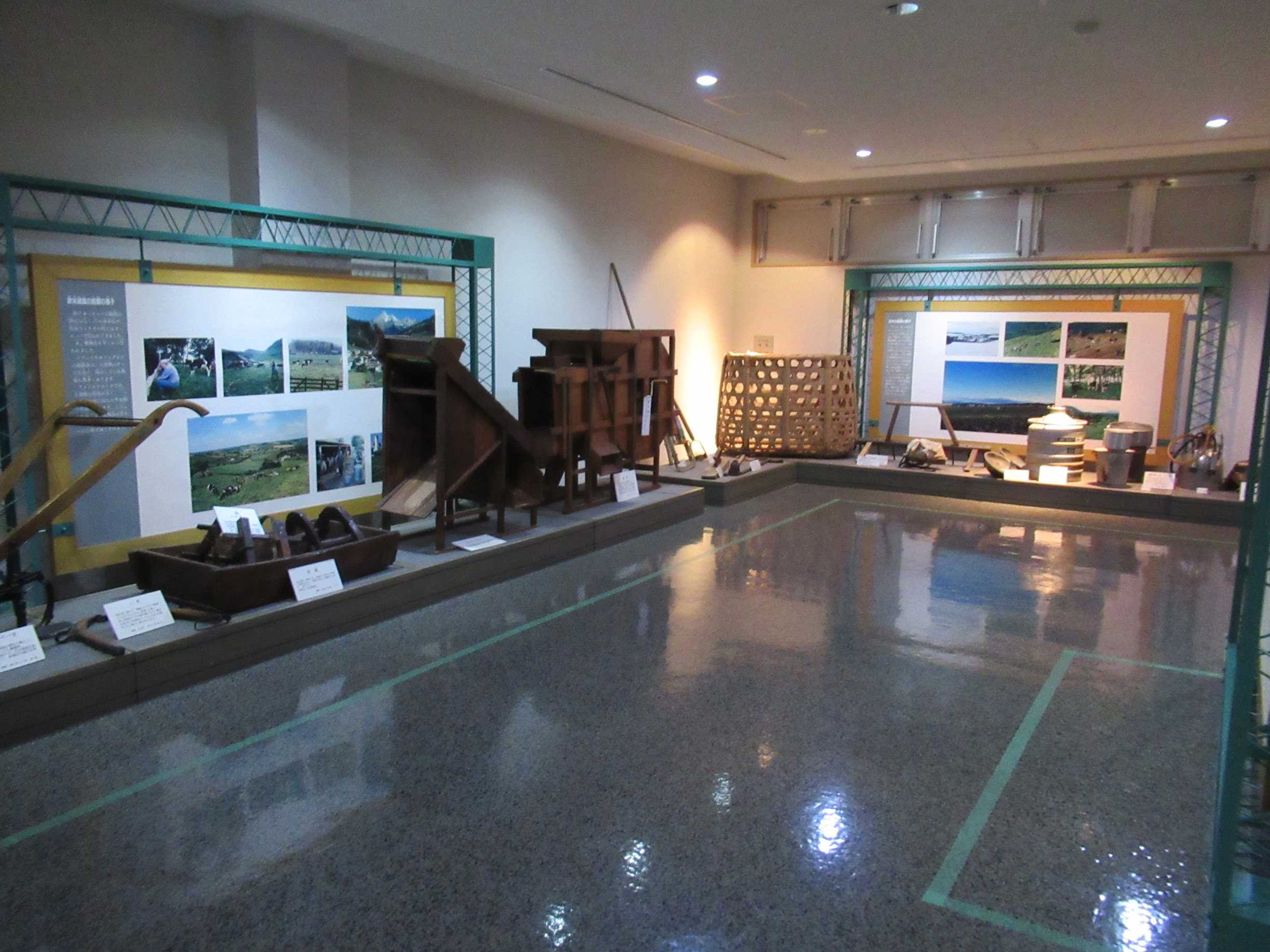 資料館の2回は常設展で民具や嶺岡牧の歴史パネルが展示されていました。
